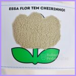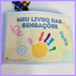 No arquivo, as páginas já vem com sugestões e algumas ilustrações para montar um livro sensorial de tato.
