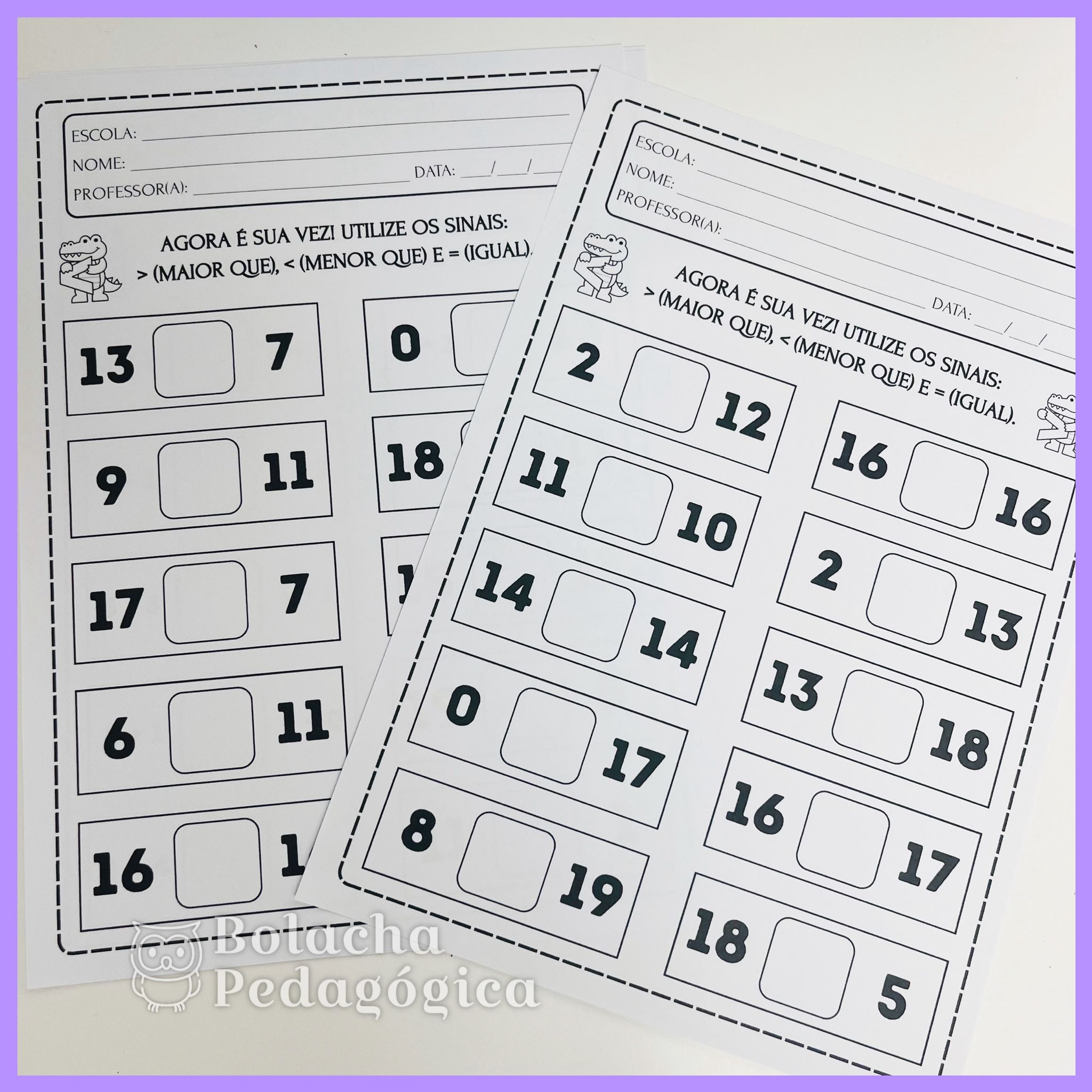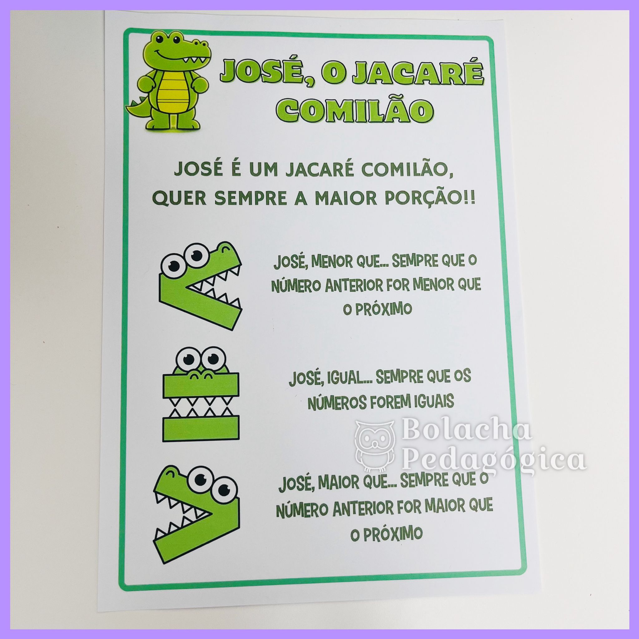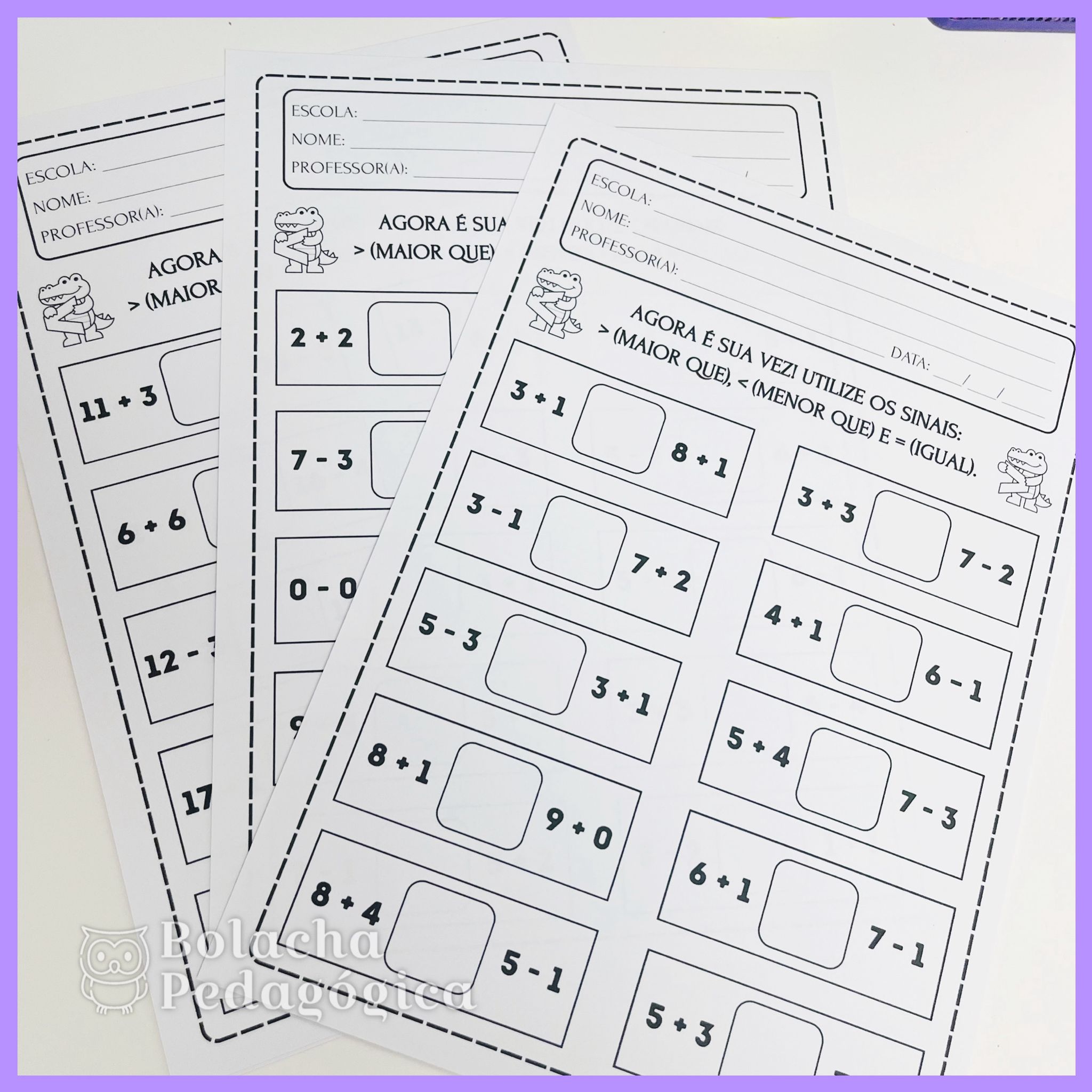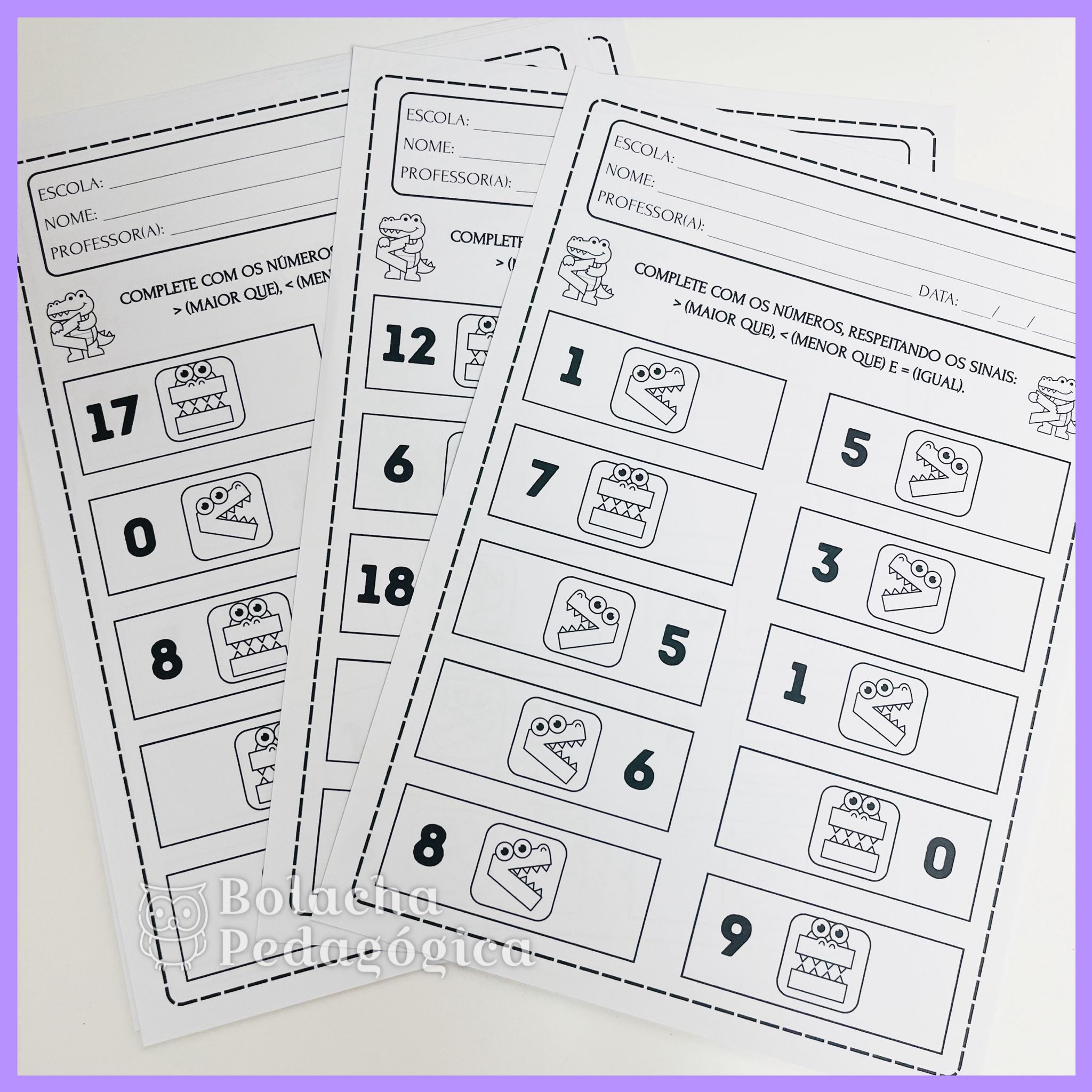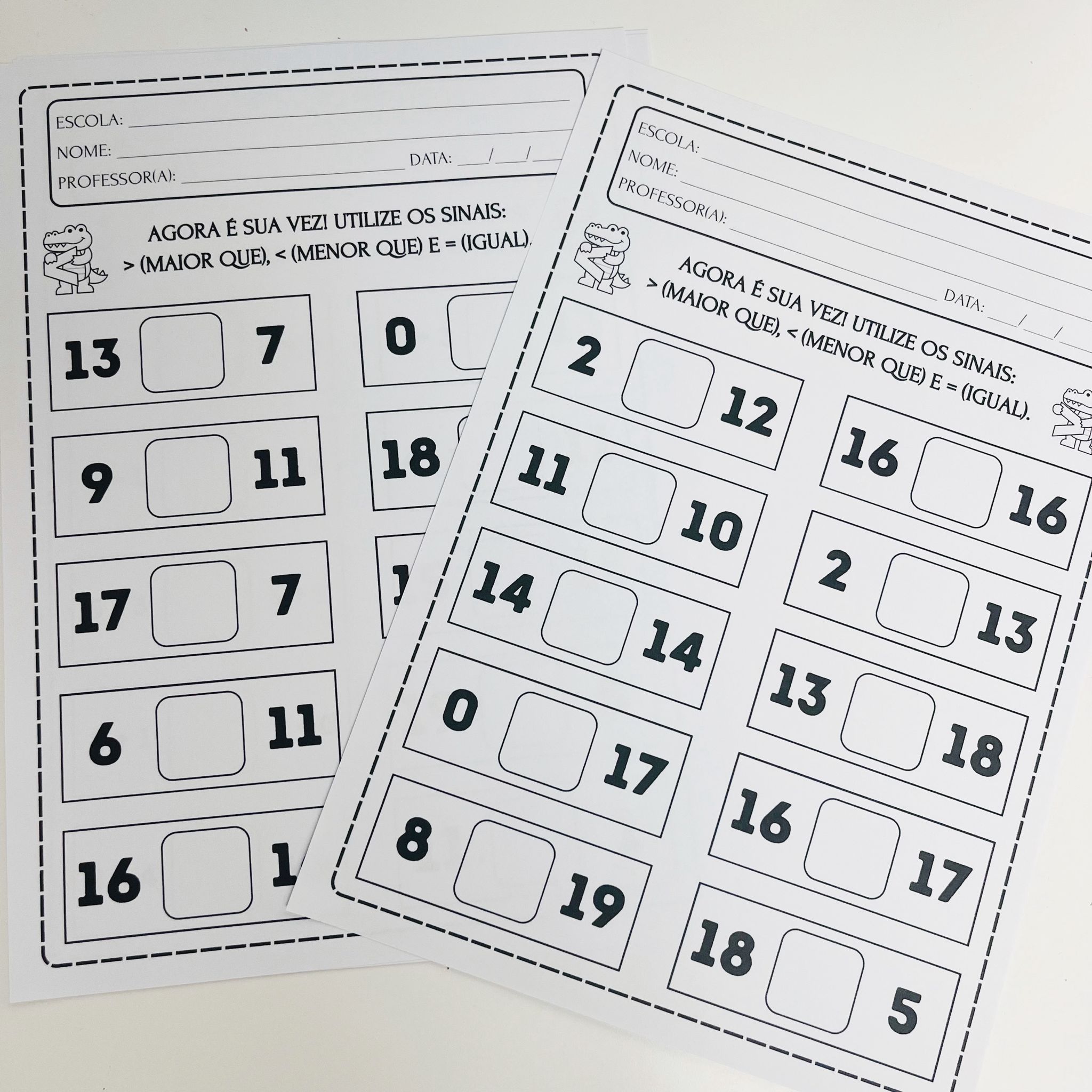 - 1 página com as boquinhas do jacaré com maior, menor e igual.