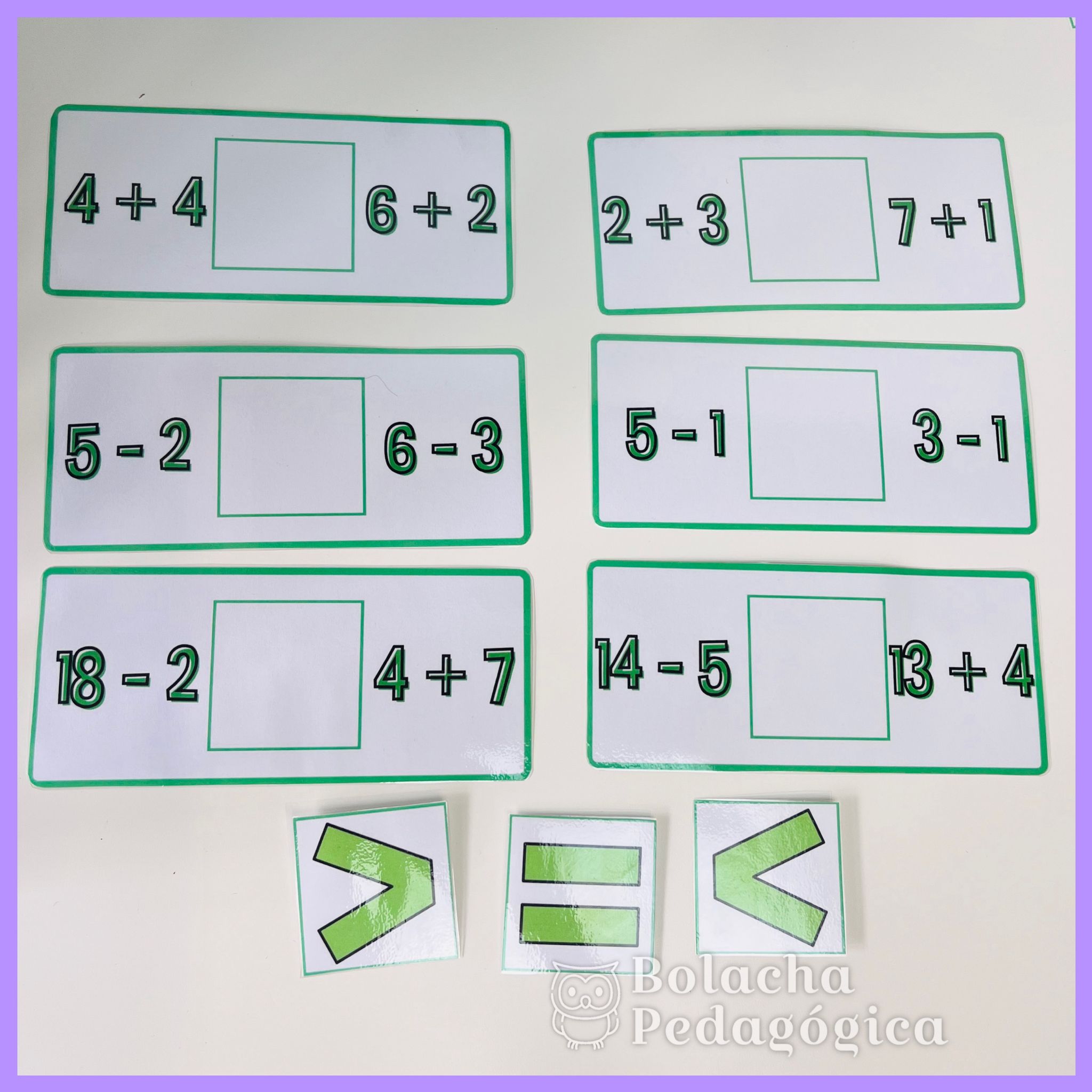 - 1 página com os sinais de maior, menor e igual.