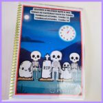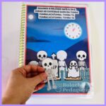 No final do arquivo tem também a imagem de uma caveirinha fofa que pode ser impressa e dada para as crianças recortarem e montarem.